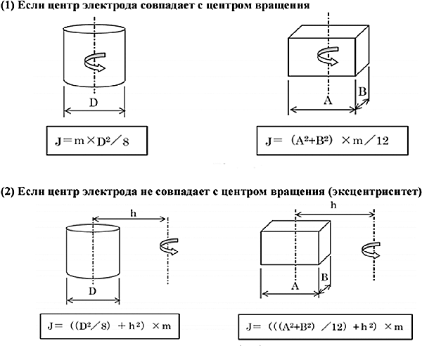 Допустимый вес также зависит от момента инерции (J), рассчитываемого по массе и форме электрода (рис. 4). Для осей с редуктором момент инерции должен находиться в диапазоне 100–500 кг·см² — в зависимости от производителя оборудования.