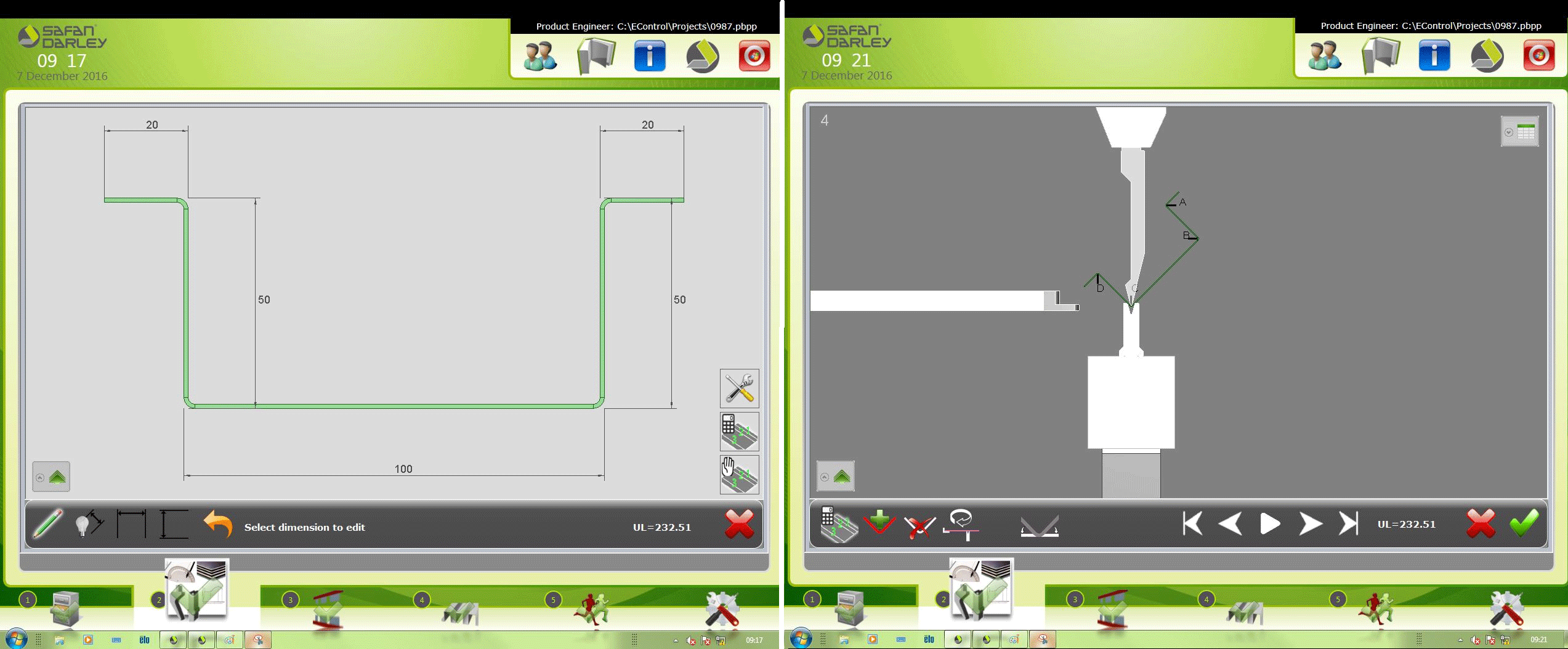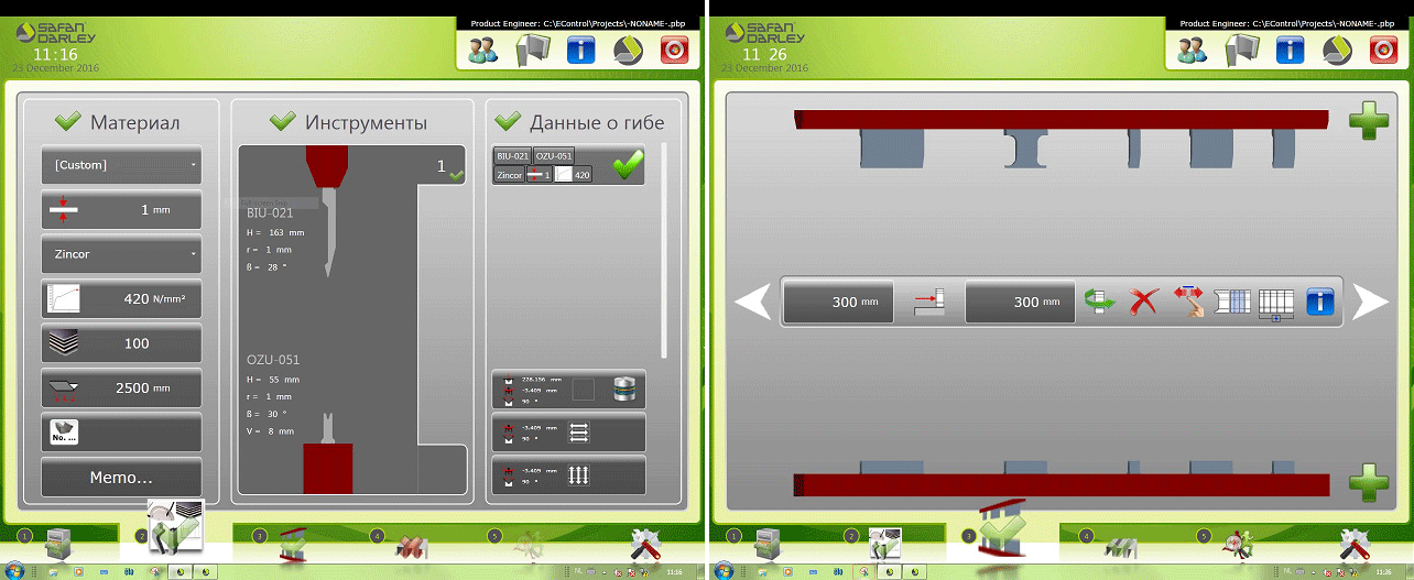 Опционально систему ЧПУ можно повысить до EC-20 , которая включает фирменное программное обеспечение EC-Profiler, которое позволяет на стойке создавать и редактировать 2D-профиль, система его автоматически обработает и сама создаст программу для работы станка. При этом каждый гиб будет проверен на наличие столкновений детали с инструментом или элементами станка. Оператор может проверить последовательность гибов и изменить ее если сочтет нужным. EC-20 позволяет загружать готовые программы с 3D-визуализацией, созданные на внешнем ПО AutoPOL . В этом случае на верхней половине дисплея будет выводиться вся дополнительная информация.
