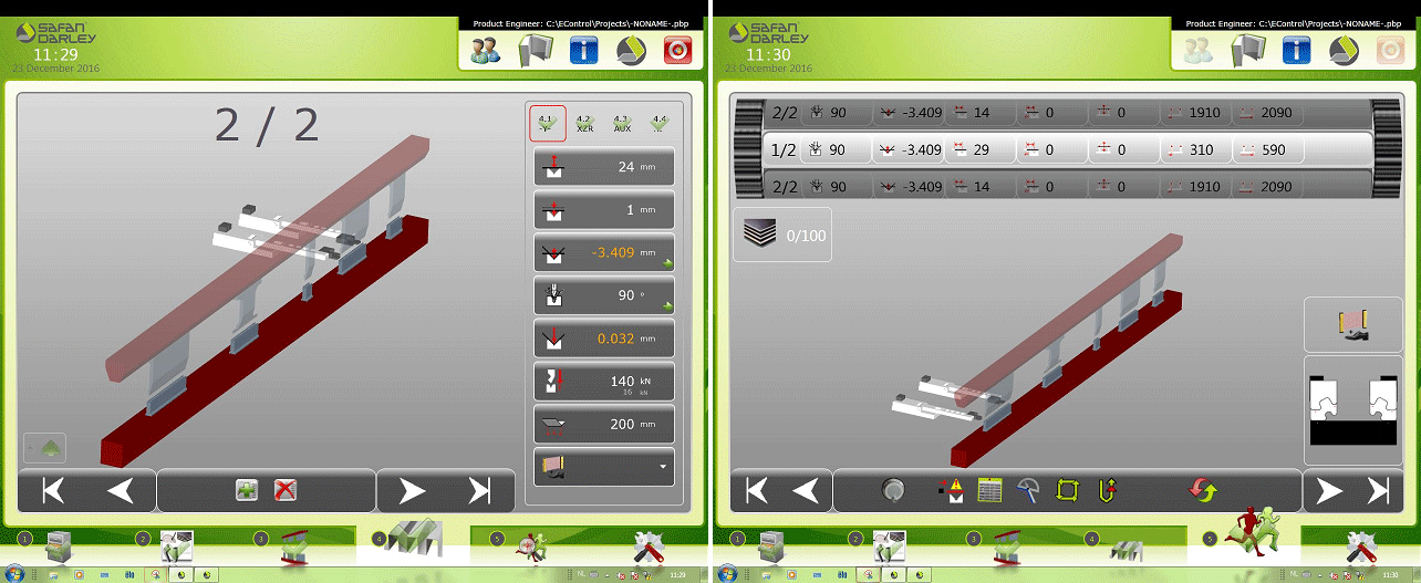 С 1995 года компания Safan разрабатывает и использует на своих листогибах собственные системы ЧПУ с применением мониторов Touch Screen. Для серии Econic выбран вертикальный дисплей увеличенного размера, выполняющий функцию двух мониторов. В базовой комплектации станок имеет систему ЧПУ EC-10 , которая обладает всем необходимым для настройки параметров станка и инструмента, прямого программирования и качественного изготовления деталей. Логика чередования окон соответствует последовательности работы — выбор материала и инструмента, расстановка инструмента, создание программы, выполнение программы.