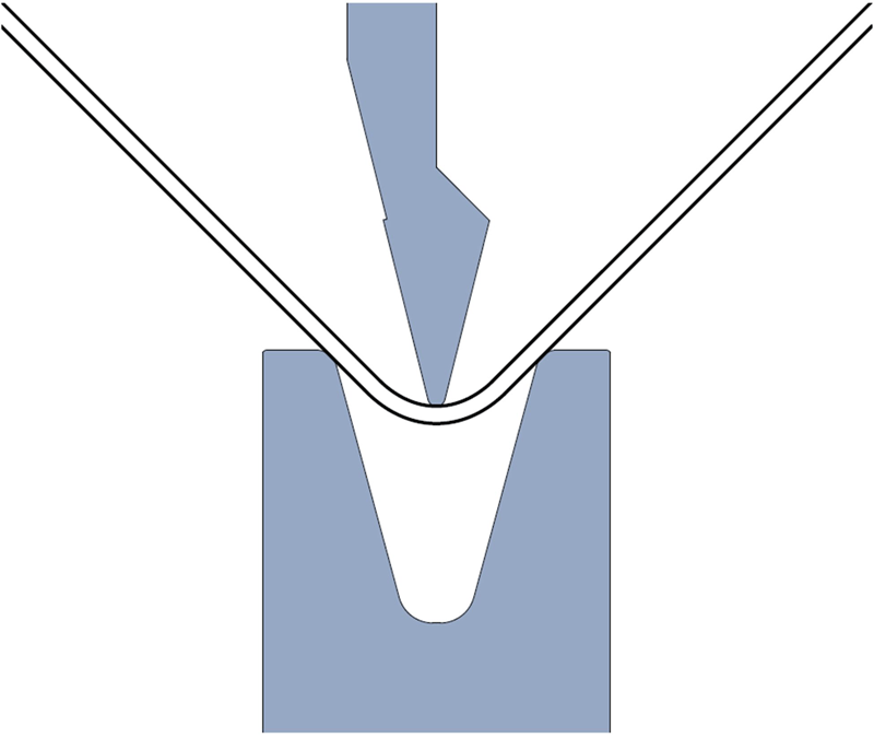Требуемое усилие , как и общее воздействие на металл, при воздушной гибке минимально . Это, в свою очередь, позволяет применять менее мощное оборудование и повышает срок службы инструмента. Как упомянуто в предыдущем абзаце, низкое требуемое усилие позволяет выполнять воздушную гибку с высокой скоростью.