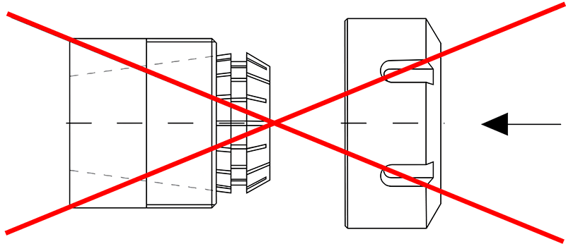 Одновременно надавите на лицевую и боковую часть цанги в направлении стрелок.