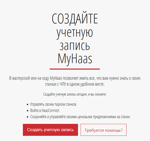 На сайте www.HaasCNC.com нажмите на MyHaas в правом верхнем углу экрана.