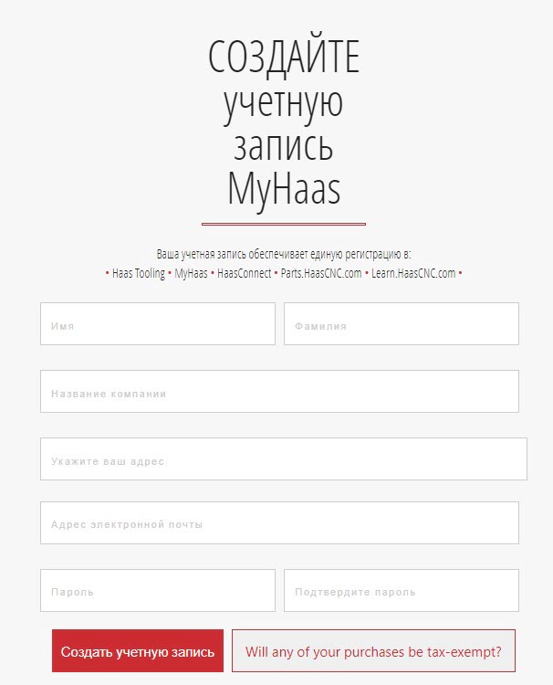 Для создания учетный записи MyHaas будет нужен действующий адрес электронной почты.
