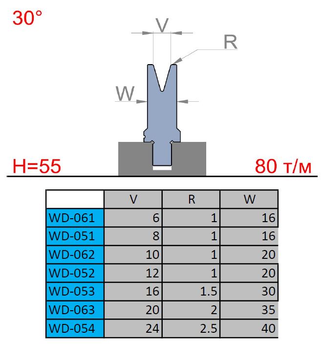 AM Матрица WD-063/1; 30° V=20mm L=515