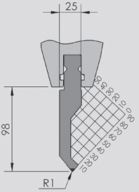 Пуансон BIU-002/6, H=98 мм, α=80°, R=1 мм, 200 мм