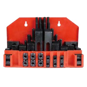 Состав набора: Шпильки резьбовые двусторонние - 75 / 100 / 125 / 150 / 175 / 200 мм. – 6 комплектов по 4 шт; Треугольные опоры для прижимов: большие, средние, маленькие – 3 комплекта по 4 шт; Комплект прижимов: большие, средние, маленькие – 3 комплекта по 2 шт; T-образные гайки (сухари) – 6 шт; Гайки для прижимов – 6 шт; Удлиненные гайки – 4 шт;