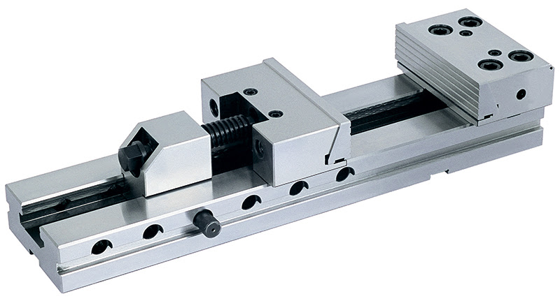 Прецизионные станочные тиски используются для высокоточной обработки деталей на фрезерных станках и обрабатывающих центрах. Конструкция тисков состоит из основания и двух прижимных блоков с подвижными и неподвижными губками, которые обеспечивают быстрое и надежное крепление заготовки. Благодаря модульной конструкции тисков можно при необходимости производить замену блоков или менять их положение. Прецизионные тиски имеют быстрозажимную систему заготовки: на основании тисов имеется ряд отверстий, с помощью которых можно регулировать подвижную часть губок под габариты детали, фиксация подвижной губки осуществляется с помощью штифта, а затем дотягивается винтом до жесткого крепления заготовки. Тисы изготовлены из высококачественной стали, твердость рабочей поверхности составляет 58 - 62 HRC. Параллельность - 0.005 мм/100 мм, перпендикулярность 0,005 мм; Ширина губок - 150 мм; Рабочий ход - 200 мм; Длина основания - 420 мм;