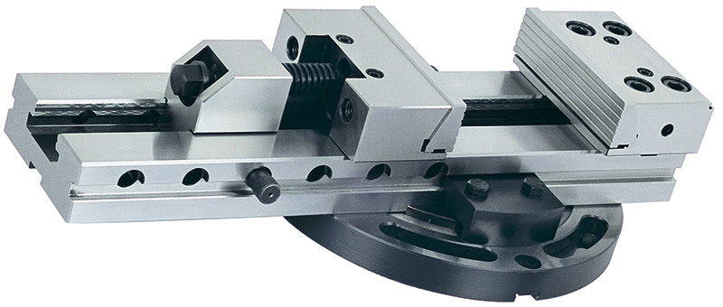 Прецизионные станочные тиски используются для высокоточной обработки деталей на фрезерных станках и обрабатывающих центрах. Конструкция тисков состоит из основания и двух прижимных блоков с подвижными и неподвижными губками, которые обеспечивают быстрое и надежное крепление заготовки. Благодаря модульной конструкции тисков можно при необходимости производить замену блоков или менять их положение. Прецизионные тиски имеют быстрозажимную систему заготовки: на основании тисов имеется ряд отверстий, с помощью которых можно регулировать подвижную часть губок под габариты детали, фиксация подвижной губки осуществляется с помощью штифта, а затем дотягивается винтом до жесткого крепления заготовки. Тиски оснащены поворотной платформой, с помощью которой тиски можно вращать на 360 градусов. Тисы изготовлены из высококачественной стали, твердость рабочей поверхности составляет 58 - 62 HRC. Параллельность - 0.005 мм/100 мм, перпендикулярность 0,005 мм; Ширина губок - 150 мм; Рабочий ход - 200 мм; Длина основания - 420 мм;