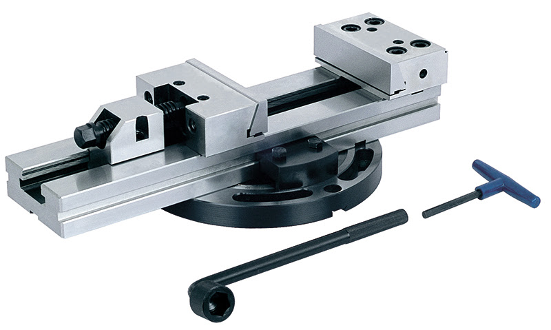 Прецизионные станочные тиски используются для высокоточной обработки деталей на фрезерных станках и обрабатывающих центрах. Конструкция тисков состоит из основания и двух прижимных блоков с подвижными и неподвижными губками, которые обеспечивают быстрое и надежное крепление заготовки. Благодаря модульной конструкции тисков можно при необходимости производить замену блоков или менять их положение. Тиски оснащены поворотной платформой, с помощью которой тиски можно вращать на 360 градусов. Тисы изготовлены из высококачественной стали, твердость рабочей поверхности составляет 58 - 62 HRC. Параллельность - 0.005 мм/100 мм, перпендикулярность 0,005 мм; Ширина губок - 150 мм; Рабочий ход - 400 мм; Длина основания - 620 мм;