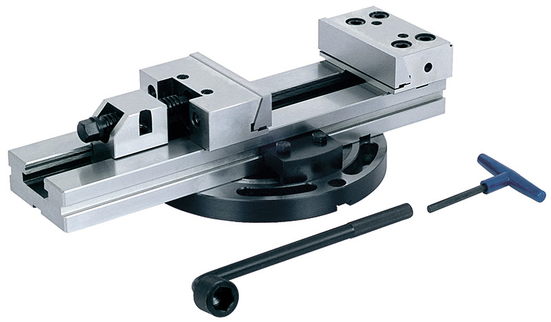 Прецизионные станочные тиски используются для высокоточной обработки деталей на фрезерных станках и обрабатывающих центрах. Конструкция тисков состоит из основания и двух прижимных блоков с подвижными и неподвижными губками, которые обеспечивают быстрое и надежное крепление заготовки. Благодаря модульной конструкции тисков можно при необходимости производить замену блоков или менять их положение. Тиски оснащены поворотной платформой, с помощью которой тиски можно вращать на 360 градусов. Тисы изготовлены из высококачественной стали, твердость рабочей поверхности составляет 58 - 62 HRC. Параллельность - 0.005 мм/100 мм, перпендикулярность 0,005 мм; Ширина губок - 175 мм; Рабочий ход - 300 мм; Длина основания - 555 мм;